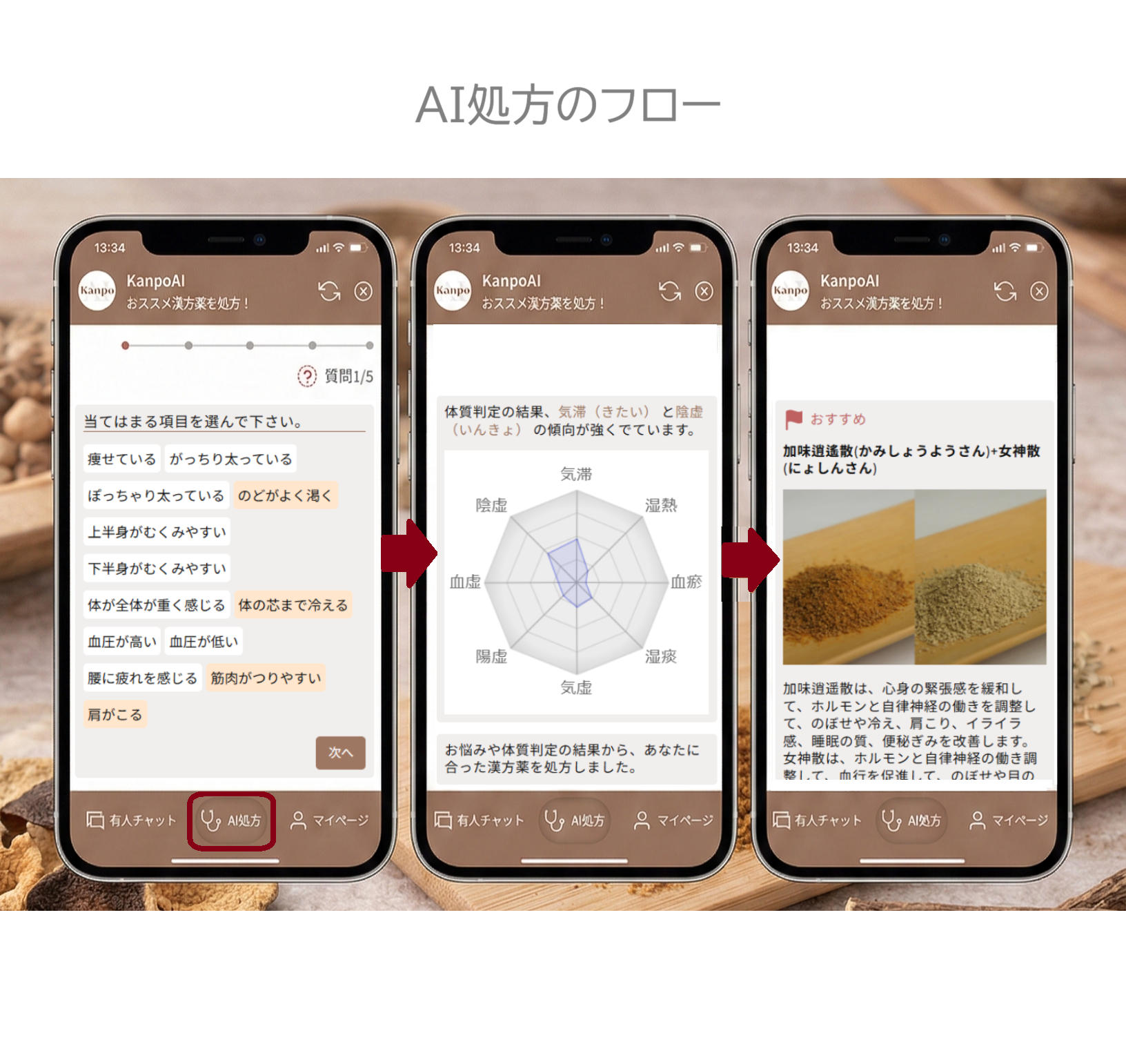 このAIは、漢方薬剤師である堀口和彦氏による数万件の処方データをもとに開発されています。